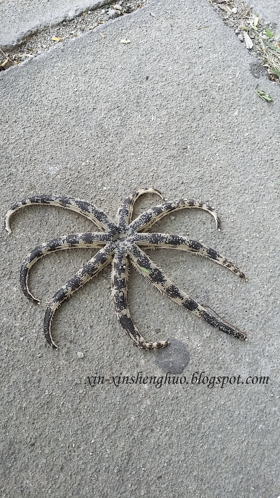 这个海星是在海水涨潮的时候漂上沙滩的~~~ 我们都以为它已经死了~~~ 一位马来同胞和我们说其实这个海星还活着的, 说完, 他就直接抓起这个海星把它丢回它的家~~~