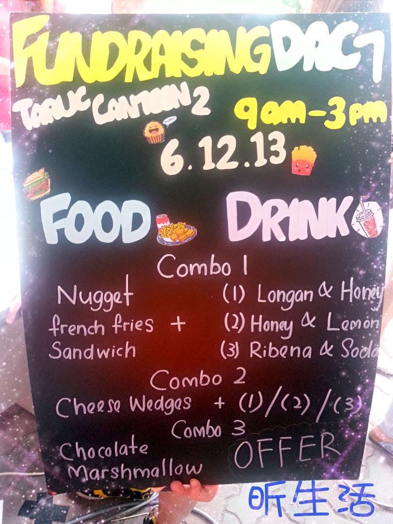 这次为了要筹钱给孤儿院,我们卖力、不辞劳苦的日夜准备这个义卖会 **(说穿了还不是因为这是我们的Coursework~~~)**